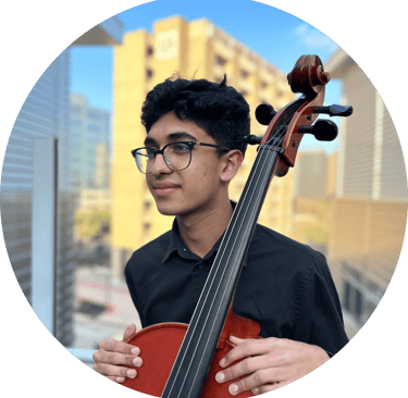 Aaron Joseph, a sophomore at Michael E. DeBakey High School for Health Professions, began his musical journey at the age of 3, delving into the piano and later casually exploring various instruments such as the guitar, bass, and drums. Since the 6th grade, he has been an integral part of the school orchestra, with a primary focus on the cello, competing at numerous TMEA All-Region and UIL state events. Notably, he contributed to the success of his orchestra representing FBISD in 2022, receiving sweepstakes as a part of the Honors Orchestra during that time. Aaron continues his musical odyssey, playing in the advanced group under the guidance of Mr. Stewart at DeBakey HSHP.